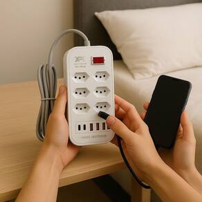 - Comprimento: 2 metros - Número de tomadas: 6 - Número de portas USB: 4 - Número de portas USB-C: 2 - Material: Plástico resistente