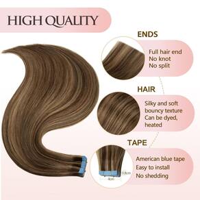 - ?Extensões de cabelo de alta qualidade?Qualidade de salão de beleza, 100% cabelo humano real, naturalmente sedoso e macio, combina perfeitamente com o seu cabelo. nossa fita de extensão de cabelo humano pode ser permanente, tingida, alisada, enrolada à vontade.