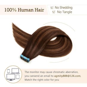 - ?Embalagem e especificações?Extensões de cabelo AGMITY fita, 20 peças, 30.5-40.6 cm: 40g, 45.7-61.0 cm: 50g, há muitas cores para escolher, normalmente você precisa de 2-3 pacotes para volume normal e 4-5 pacotes para cabeça inteira. (devido ao monitor, pode haver uma diferença de cor na cor do cabelo, sinta-se à vontade para entrar em contato comigo para resolvê-lo para você)