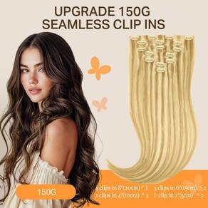 - Atualize para 130 g/150 g por pacote: Obtenha um visual completo com apenas um conjunto. Disponível em 35,6 cm, 40,6 cm, 45,7 cm (130 g) e 50,8 cm, 56 cm (150 g). Não há necessidade de dois pacotes — um é suficiente. Para um visual perfeito ainda mais natural, combine com clipes sem costura de 110 g