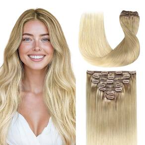 Extensões de cabelo com clipes: conjunto de 7 peças de 120 g. Peso líquido de 105 g para cabelo sem clipes, 120 g para cabelo com clipes. Um conjunto para cabelos grossos, dois conjuntos para cabelos finos. Se você quiser adicionar comprimento e volume, recomendamos que você escolha 2 conjuntos.