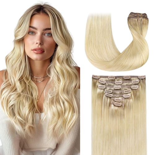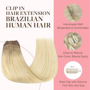 - Clipes de alta qualidade, rápidos de usar: Clipes finos de silicone com um design de poliuretano tornam nossas extensões invisíveis, confortáveis e leves. Costurados e acolchoados com segurança, protegem seu couro cabeludo e cabelo. Fácil de aplicar, perfeito para qualquer ocasião
