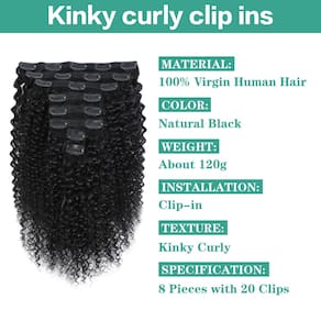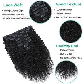 Marca: Humistwbiu Cor: preto natural Material: cabelo humano Comprimento: 25 a 61 cm Estilo: cacheado crespo Peso: 120 g/pacote - Material do cabelo: Os clipes cacheados cacheados usam cabelo Remy brasileiro, super saudável, macio e sedoso, durável e extremidade grossa. - Qualidade do cabelo: presilhas encaracoladas, sem queda, sem emaranhados, sem cheiro. Pode ser reestilizado e tingido. Espessura mantida de cima a ponta. - Especificação: 25-61 cm, cerca de 120 g, 8 peças/conjunto para cada bolsa. Ao medir o comprimento, alise o cabelo e meça-o. - Fácil de usar: extensões de cabelo encaracolado crespo é fácil de prender e retirar. Geralmente 2 sacos são suficientes para uma cabeça inteira. - Cachos lindos: as extensões de cabelo cacheadas são a melhor escolha para adicionar comprimento, volume ao seu cabelo e fazer você parecer mais jovem.