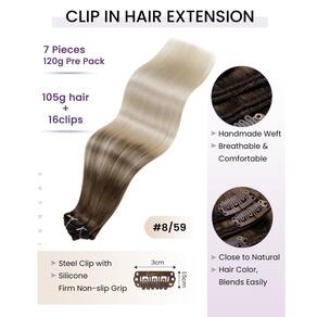 Transforme instantaneamente o seu cabelo com as extensões de cabelo LaaVoo Clip in Hair Real Human Hair! Você está procurando transformar seu penteado sem esforço? Não procure mais, LaaVoo, nossas extensões de cabelo com clipe são ótimas para uso diário, casamentos, festas, cosplay e outras ocasiões. Esperamos trazer a você uma beleza incomparável. As extensões de clipe LaaVoo são feitas de 100% cabelo humano e são mais fáceis de usar, você pode tratá-las como se fosse seu próprio cabelo. Especificações: Marca: LaaVoo Tipo de extensão: Extensões de cabelo com clipe 7 peças. Qualidade: Extensões de cabelo humano 100% Remy. Cor do cabelo: preto sólido, marrom, loiro; balayage, ombre, destaques. Peso do conjunto: 120 g-170 g com 16 clipes por conjunto. Dicas: (1) Observação: o cabelo humano é macio por natureza. A vida útil depende muito de como eles são utilizados e cuidados. Xampus/condicionadores inadequados, frequentemente usando ferramentas de aquecimento, tingimento, modelagem pesada podem encurtar a vida útil. Ao contrário do nosso próprio crescimento de cabelo no couro cabeludo, essas extensões de cabelo não conseguem mais obter nutrição e umidade das raízes. (2) Diferenças de cor não podem ser evitadas devido a diferenças entre monitores e luzes. (3) O cabelo é um clipe de trama dupla em extensões de cabelo humano, há cabelo curto nas raízes. Cuidados e uso Sobre a coloração: Nossas extensões de cabelo com clipe só podem ser tingidas em cores mais escuras por processo de tingimento profissional. Mas não sugerimos que você tinga as extensões de cabelo, porque o processo de tingimento não profissional encurtaria a vida útil do cabelo e afetaria o desempenho do cabelo. Sobre o sono Nunca durma com o cabelo molhado. Antes de dormir, certifique-se de que seu cabelo esteja seco e amarre-o. É sempre melhor fazer uma trança solta ou rabo de cavalo ao dormir. AME NOSSO CABELO, APROVEITE SUA VIDA! Desejamos que todos os clientes possam ter um bom dia com um cabelo! - [Extensões de cabelo LaaVoo 7 peças] Grampo de cabelo humano LaaVoo em extensões 7 peças preferem uma especificação mais adequada para criar um visual mais cheio. 14-22 polegadas: 105 g de cabelo mais 16 presilhas ˜ 120 gramas; 61 cm: 120 g de cabelo mais 16 presilhas ˜ 140 gramas; 66 cm: 150 g de cabelo mais 16 presilhas ˜ 160 gramas; 71 cm: 160 g de cabelo mais 16 clipes. ˜170 gramas. Sugestão de mais volume: combine LaaVoo extensão de cabelo com extensões de cabelo de arame ou extensões de 5 peças, o que criará um peso superior a 200 g. - [Personagens LaaVoo Clip in Hair Extensions] Extensões LaaVoo com clipe, criadas exclusivamente a partir de cabelo humano real, livre de fibras sintéticas ou pêlos de animais. Para alcançar um efeito natural como nosso próprio cabelo, as pontas do cabelo serão mais finas do que as raízes. Sob o mesmo peso, quanto maior o tamanho do cabelo, mais fino será a sensação das pontas do cabelo. A base das tramas tem cabelos curtos bem trabalhados, firmemente presos com o mínimo de queda. Esta é uma tecnologia de produção normal. - [Manutenção e cuidados] Para garantir a longevidade e durabilidade de suas extensões de cabelo, a manutenção adequada é vital. Evite pentear o calor excessivo, use produtos suaves (manchas ocorrem ao usar xampu roxo) e guarde-os com bolsas de armazenamento de extensões de cabelo quando não estiverem em uso. Não use alvejante nas extensões de cabelo humano LaaVoo Como as extensões de cabelo LaaVoo foram submetidas a tingimento e outros tratamentos, mais branqueamento ou tingimento mais leve danificarão a qualidade do cabelo e encurtarão sua vida útil. - [Conheça LaaVoo variedade de cores em extensões de cabelo humano] LaaVoo Clip in Hair Extensions oferece uma variedade de cores populares, incluindo preto sólido, marrom, loiro e balayage, ombre, destaque, que pode combinar bem com o seu próprio cabelo. Pequenas dicas: Haverá diferenças de cor entre diferentes monitores e luzes, recomenda-se que a escolha da cor dependa das raízes do seu próprio cabelo. Se ainda não tiver certeza sobre a cor, nossas equipes de correspondência de cores e personalizadas estão aqui para ajudá-lo. - [Embalagem atualizada e clipes de substituição] Cada pacote de extensões de cabelo LaaVoo Clip in Hair contém dois clipes de substituição no futuro. Como ainda está atualizando, o que você recebe pode ser especificações antigas ou novas aleatórias. A embalagem dos clipes de extensões de cabelo LaaVoo é completa e limpa, com adesivos de vedação não rasgados. Para evitar receber produtos de revenda, retire a caixa após o uso do produto.