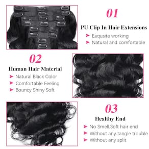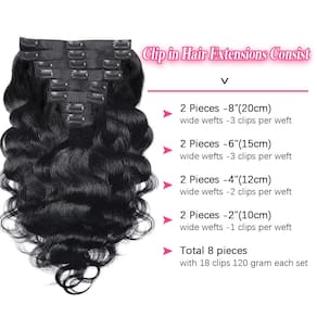 Estas extensões de cabelo com clipe são feitas de cabelo humano 100% real com uma espessura de 150% de cima para baixo. As extensões de cabelo são macias, lisas e sem emaranhados, com brilho e brilho naturais. Eles podem ser tingidos, enrolados e alisados, assim como seu próprio cabelo. As extensões vêm com 10 clipes, que são fáceis de usar e podem ser aplicados em apenas alguns minutos. Eles são perfeitos para adicionar comprimento, volume ou textura ao seu cabelo e podem ser utilizados para ocasiões especiais ou uso diário. As extensões estão disponíveis em uma variedade de cores e comprimentos para atender às suas necessidades e são feitas de materiais de alta qualidade que são duráveis e duradouros. - Material do cabelo: 100% cabelo humano brasileiro vem de meninas. Mais macio, mais natural, mais adequado para a pele. Mais avançado do que outros materiais. Pode ser tingido e descolorido para torná-lo o protangonista em todos os penteados. - Extensões de cabelo com clipe de trama de poliuretano: as extensões de cabelo com clipe de poliuretano pressionam o cabelo no poliuretano com os clipes, o que torna as extensões de cabelo mais invisíveis, confortáveis, naturais e mais leves. O design PU se ajusta ao seu couro cabeludo de forma mais invisível, parece mais próximo da cor da pele. - Clipe de cabelo fácil de usar: em comparação com outras formas de usar, o grampo no cabelo é mais fácil e mais conveniente para deixar você impressionar mesmo que não tenha muito tempo. De acordo com o volume do seu cabelo, geralmente 2 pacotes podem encher sua cabeça, aumentando o comprimento e o volume. Se você gosta de cabelos mais grossos, recomenda-se usar 3 pacotes. - Mais confortável e adequado para clipes de poliuretano: tiras de poliuretano macias atualizadas - sem rigidez e sem pregas, cabelo humano - pode ser modelado - usamos tiras de poliuretano macias, o que fará com que as extensões de cabelo com clipe de poliuretano se ajustem perfeitamente ao couro cabeludo e evitam que se deforme por um longo tempo. - Vários minutos para sua beleza: rápida e fácil, cada trama de cabelo com largura diferente - atende às necessidades de diferentes partes do cabelo - 5 minutos de usar, maneira mais fácil e rápida de adicionar volume e comprimento ao seu próprio cabelo. Um pacote com 8 peças de largura diferente e total de 18 clipes.
