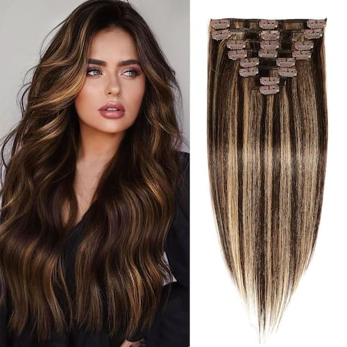 Feitas com 140% cabelo humano real, essas extensões adicionam comprimento e volume, dando a você o visual lindo e completo que você deseja. Se você deseja adicionar cachos saltitantes, destaques vibrantes ou uma cor completamente nova, essas extensões podem ser personalizadas para se adequar ao seu estilo e preferências únicos. Diga adeus aos cabelos lisos e sem vida! Ninguém será capaz de dizer que você está usando extensões! Você terá a confiança de arrasar com qualquer penteado com facilidade. As extensões de cabelo preto combinam perfeitamente com o seu cabelo natural, dando a você um resultado deslumbrante e autêntico. Conforto e proteção são fundamentais, e é por isso que nossas extensões de cabelo com clipe apresentam clipes de aço inoxidável duráveis cobertos com borracha macia. Estes clipes fornecem uma fixação segura enquanto garantem conforto e protegem seus preciosos fios de danos. Você pode usar suas extensões o dia todo sem qualquer desconforto ou preocupações. Você pode facilmente enrolar, tingir e estilizar como seu cabelo natural. Se você deseja adicionar cachos saltitantes, destaques vibrantes ou uma cor completamente nova, essas extensões podem ser personalizadas para se adequar ao seu estilo e preferências únicos. Diga adeus aos cabelos lisos e sem vida! Atualize seu visual com nossas extensões de cabelo humano real e experimente a transformação em primeira mão. Adicione comprimento, volume e estilo ao seu cabelo sem esforço e abrace a beleza e a confiança que vem com ele. Não aceite cabelos comuns. Alcance o comprimento, o volume e o estilo que você sempre quis, mantendo a aparência autêntica do seu cabelo natural. - Adequado para iniciantes: Projetado para sua conveniência, as extensões de cabelo com clipe facilitam para alcançar o comprimento e o volume que você deseja em um instante. Sem complicações, apenas fechaduras impecáveis. - Ótima qualidade: com nossas extensões de cabelo com clipe, você pode esperar nada menos do que o melhor cabelo humano 100% real que mostra uma aparência e sensação naturais. - Estilo versátil: abrace sua criatividade e expresse seu estilo único com nossas extensões de cabelo humano real. Enrole, tinga e estilize para infinitas possibilidades e visuais deslumbrantes. - Integração sem costura: Meticulosamente trabalhada para se misturar perfeitamente com o seu cabelo natural. Os clipes de aço inoxidável duráveis, cobertos com borracha macia, proporcionam conforto e protegem seus preciosos fios. A técnica de trama dupla garante longevidade e um resultado impecável. - Transformação instantânea: prepare-se para chamar a atenção onde quer que você vá, pois nossas extensões de cabelo com clipe estão aqui para ajudar você a liberar sua deusa interior. Desfrute de glamour instantâneo e um novo visual incrível que deixará todos admirados.