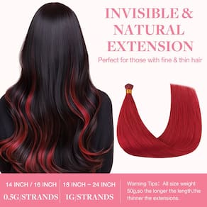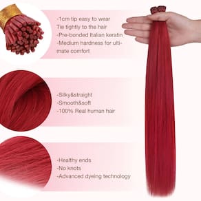 GOO GOO Extensões de cabelo coloridas I Tip, cabelo humano real, 56 cm, 50 g, 50S, Cold Fusion, Remy invisível, vermelho - I Tip Cabelo Humano 100% Autêntico: Entregue-se à qualidade premium das extensões de cabelo GOO GOO I Tip cabelo humano real, projetado para resistência ao calor e durável. Desfrute de uma mistura sedosa e sem emaranhados que complementa naturalmente seu próprio cabelo - Peso de ajuste e comprimentos versáteis: Se você deseja 35,5-40,6 cm (100 fios) ou 45,7-61 cm (50 fios), nossas extensões de cabelo humano I Tip de 50 g garantem um ajuste personalizado. Se o seu cabelo for grosso, precisa de 1-2 pacotes, se o seu cabelo for fino, precisa de 3-4 pacotes - Características inovadoras: a I Tip possui um micro anel discreto para reutilização sem calor; a ponta de microanel apresenta tecnologia revolucionária de micro-elos, fácil de desmontar e reutilizável; a ponta em U apresenta um design inovador em forma de U, garantindo uma fixação invisível e forte - Ligações delicadas de queratina italiana atualizadas: forte e resistente a rachaduras, oferecendo uma fixação segura e confortável com um visual natural. Oferece volume instantâneo para uso diário ou ocasiões especiais como casamentos e eventos de dança, mantendo você confiante e elegante - Mantenha as extensões radiantes: transforme seu estilo — endireite, enrole, lave ou estilize sem clarear a cor para um brilho duradouro. Para manter a exuberância do cabelo humano real I Tip, penteie suavemente das pontas às raízes e aplique óleo de cabelo semanalmente