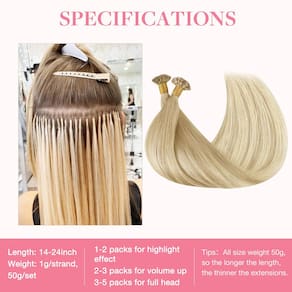 GOO GOO Extensões de cabelo U Tip Cabelo Humano Real, 35,5 cm 50 g 50S, Extensões de Cabelo Hot Fusion com Ponta U, Extensões de Cabelo Remy Invisível, 18ET90A Loiro Natural Balayage - Cabelo humano 100% autêntico micro ponta: entregue-se à qualidade premium das extensões de cabelo GOO GOO Micro Link Tip cabelo humano real, projetado para resistência ao calor e durável. Desfrute de uma mistura sedosa e sem emaranhados que complementa naturalmente seu próprio cabelo - Peso de ajuste e comprimentos versáteis: Se você deseja 35,5-40,6 cm (50 fios) ou 45,7-61 cm (50 fios), nossas extensões de cabelo humano Micro Link Tip 50 g garantem um ajuste personalizado. Se o seu cabelo for grosso, precisa de 1-2 pacotes, se o seu cabelo for fino, precisa de 3-4 pacotes - Características inovadoras: a I Tip possui um micro anel discreto para reutilização sem calor; a ponta de microanel apresenta tecnologia revolucionária de micro-elos, fácil de desmontar e reutilizável; a ponta em U apresenta um design inovador em forma de U, garantindo uma fixação invisível e forte - Ligações delicadas de queratina italiana: forte e resistente a rachaduras, oferecendo uma fixação segura e confortável com um visual natural. Oferece volume instantâneo para uso diário ou ocasiões especiais como casamentos e eventos de dança, mantendo você confiante e elegante - Mantenha as extensões radiantes: transforme seu estilo — endireite, enrole, lave ou estilize sem clarear a cor para um brilho duradouro. Para manter a exuberância do cabelo humano real da Micro Link Tip, penteie suavemente das pontas às raízes e aplique óleo de cabelo semanalmente