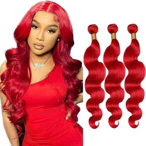 - 3. Cor dos pacotes ondulados do corpo vermelho: cor vermelha, feixes de cabelo humano vermelho.