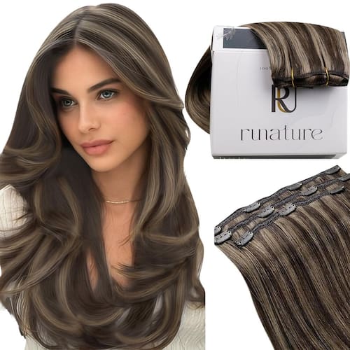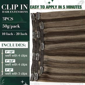 Transforme seu cabelo em minutos com extensões de cabelo com clipe, projetadas para dar RUNATURE você uma aparência natural e volumosa que melhora seu estilo sem esforço. Cabelo humano real: Nossas extensões de cabelo são feitas de cabelo humano real de alta qualidade, oferecendo longevidade incomparável e uma sensação natural. Pode ser tingido e estilizado, que pode se misturar perfeitamente em seu próprio cabelo. Coloração e descoloração: Sinta-se à vontade para personalizar suas extensões com tratamentos de cor. Nossas extensões de clipe podem lidar com isso. No entanto, o branqueamento pode afetar significativamente a qualidade das extensões de cabelo, muitas vezes fazendo com que elas fiquem secas e emaranhadas. Faça um teste de fio antes de aplicar a cor. Sem emaranhamento e manutenção: As extensões de cabelo humano com clipe RUNATURE são macias, suaves e resistentes ao emaranhamento. Escove-os suavemente com um pente de dentes largos. Armazene adequadamente em local fresco e seco quando não estiver em uso e aplique condicionador para manter a suavidade e evitar nós. Conforto e uso: Nossas extensões de cabelo com clipe são projetadas para o máximo de conforto. Os clipes com silicone são seguros e suaves, garantindo que permaneçam no lugar sem causar desconforto ou danos ao seu cabelo natural. O design leve garante que você possa usá-los o dia todo com facilidade. Estilo térmico: As extensões de cabelo RUNATURE são resistentes ao calor, permitindo que você use chapinhas e alisadores para alcançar o estilo desejado. Lembre-se de manter a temperatura em torno de 160 °C; use um spray de proteção contra calor antes. Longa duração: Nossas extensões de cabelo com clipe duram de 8 a 16 semanas se forem usadas regularmente, e ainda mais se forem usadas apenas ocasionalmente. A manutenção regular, combinada com cuidados capilares de qualidade, tornam essas extensões ideais para um visual duradouro. Preservação do cabelo natural: Sem cola, sem ingredientes químicos e não danificará seu cabelo natural. Eleve seu jogo de cabelo com as extensões de cabelo RUNATURE Clip in Hair e desfrute de uma transformação bonita e natural com facilidade. Perfeito para adicionar comprimento, volume e estilo. - Cabelo humano real: a textura do cabelo, cor, brilho é exatamente o mesmo que o cabelo natural; pode ser tingido, enrolado ou alisado como cabelo natural, sem eletricidade estática ou emaranhado facilmente - Duas especificações adequadas para suas necessidades: se o seu cabelo for um pouco mais longo, você pode escolher 3 peças de clipes de comprimento semelhante para um melhor penteado; se você tiver cabelo curto ou quiser aumentar significativamente o volume do cabelo, os 7 clipes atenderão às suas necessidades - Melhores clipes de silicone e borda de trama de cobertura de renda: Isso garante respirabilidade e conforto enquanto prende firmemente as extensões de cabelo ao cabelo; mesmo se você usá-lo o dia todo sem qualquer desconforto - Fácil e rápido de usar: não há necessidade de gastar muito dinheiro para contratar um cabeleireiro profissional para ajuda; até mesmo iniciantes podem aplicar facilmente as extensões de cabelo - Misture bem: as extensões de cabelo com clipe são projetadas para serem muito invisíveis, com clipes pequenos e resistentes, as extensões de cabelo se misturam facilmente com o cabelo natural, resultando em um efeito natural e discreto