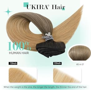 As matérias-primas de extensões de cabelo Extensões de cabelo Ukira com clipe de cabelo humano real, extensões de cabelo humano 100% Remy, o cabelo Remy é recolhido da cabeça dos doadores de forma a manter as cutículas do cabelo adequadamente alinhadas em relação aos cabelos vizinhos. Isso significa que o cabelo permanece mais macio, sedoso e mais saudável do que o cabelo humano comum. Quando lavado, não fica emaranhado e emaranhado. Por que escolher o cabelo Ukira Nossas extensões de cabelo se misturam naturalmente com o seu próprio cabelo e podem ser lavadas, secadas, chapadas e/ou enroladas usando ferramentas quentes, assim como seu próprio cabelo, sem queda, sem emaranhados, sem cheiro, macio e sedoso. A combinação de 7 peças é flexível para usar à sua escolha. Os clipes já estão presos e o conjunto está pronto para uso instantâneo em apenas 5 minutos sem o incômodo de colas, fitas ou tecidos. Detalhes do cabelo Comprimentos do cabelo: 30,5 - 56 cm Peso do cabelo: 100 - 120 g Estilo do cabelo: Liso sedoso Vida útil do cabelo: 6-12 meses (dependendo do cuidado e uso) Observação: -- O cabelo humano é macio por natureza. A vida útil depende muito de como eles foram utilizados e cuidados. Xampus/condicionadores inadequados, frequentemente usando ferramentas de aquecimento, tingimento, modelagem pesada podem encurtar a vida útil. -- Todas as fotos são tiradas pela UkiraHair, portanto, observe a diferença de cor devido a diferentes luzes e monitores. - Grampo de alta qualidade em extensões de cabelo humano Remy -- Extensões de cabelo humano 100% real Clipe. Tão suave e macio quanto o seu próprio cabelo, sem emaranhamento e sem queda. As extensões de cabelo com clipe podem adicionar volume e comprimento ou destaques ao seu próprio cabelo, misturando-se perfeitamente com o seu próprio cabelo. Nossas extensões de cabelo podem ser lavadas, cortadas, tingidas, alisadas e enroladas ao seu gosto. - Especificações de extensões de cabelo humano real -- extensões de cabelo ombre cabelo humano real, 7 peças 120 g com 17 clipes por conjunto, 35 cm, #2T6T27. De acordo com o seu próprio volume de cabelo, apenas para engrossar o seu cabelo, aconselhamos comprar 1-2 conjuntos; quer cabeça cheia, conselho comprar 2-3 conjuntos. Quando o peso for o mesmo, o tamanho maior será mais fino do que o tamanho menor. - Extensões de cabelo com clipe que combinam com a cor do cabelo humano real – Nossas extensões de cabelo humano com clipe incluem uma variedade de cores sólidas, destaque, ombre e efeitos balayage. Oferece várias opções para criar diferentes penteados. Devido a diferentes equipamentos de iluminação e exibição, pode haver pequenas diferenças de cor entre as imagens do produto e o cabelo real. Podemos fornecer serviços de correspondência de cores antes de fazer seu pedido. - Confortável e fácil de usar – Extensões de cabelo sem costura, o cabelo humano real tem 17 cartões de metal em forma de U costurados. A cor dos clipes é próxima à cor do cabelo, muito ocultável. Os clipes são costurados de forma estável e cobertos com uma camada de borracha macia para reduzir efetivamente o puxão do cabelo. Você pode facilmente colocar ou tirar suas extensões de cabelo em 5 minutos. Se os clipes forem danificados durante o transporte ou uso, fornecemos substituição vitalícia. - Pontas de extensões de cabelo humano com clipe – Cuide adequadamente das extensões de cabelo para manter a suavidade e o brilho. Use xampu e condicionador neutros. Ao tingir, recomenda-se tingir cores mais escuras, e não é recomendado tingir cores claras. Controle a temperatura abaixo de 180 °C ao reestilizar. As extensões de cabelo podem durar aproximadamente 3-4 meses com bom cuidado.