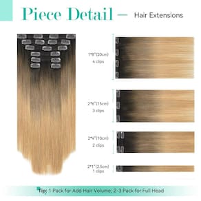 - Especificações de extensões de cabelo humano real -- extensões de cabelo ombre cabelo humano real, 7 peças 120 g com 17 clipes por conjunto, 35 cm, #2T6T27. De acordo com o seu próprio volume de cabelo, apenas para engrossar o seu cabelo, aconselhamos comprar 1-2 conjuntos; quer cabeça cheia, conselho comprar 2-3 conjuntos. Quando o peso for o mesmo, o tamanho maior será mais fino do que o tamanho menor.