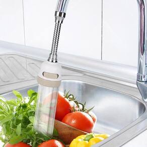 Extensor Torneira Chuveirinho Flexível 2 Tipos de Jatos - TRC8345#DESCRIÇÃOExtensor Torneira Chuveirinho é o ideal utensílio para sua cozinha, graças ao bocal rotativo de 360 graus, 2 modos ajustáveis, facilita e simplifica a limpeza de vegetais, pratos, comidas e muito mais. Fácil de instalar e limpar, adequado para a maioria dos tipos de torneiras. O adaptador permite você mudar o ângulo do jato de água, facilitando a limpeza dos seus pratos e talheres ao mesmo tempo que economiza em torno de 30 % a 70% o consumo de água da sua torneira. Lave seus pratos e alimentos melhor usando menos água.#CARACTERÍSTICAS Cor: Prata e Branco Material: PlasticoAltura: 18cmDiâmetro: Ø5x5cmPeso: 150g