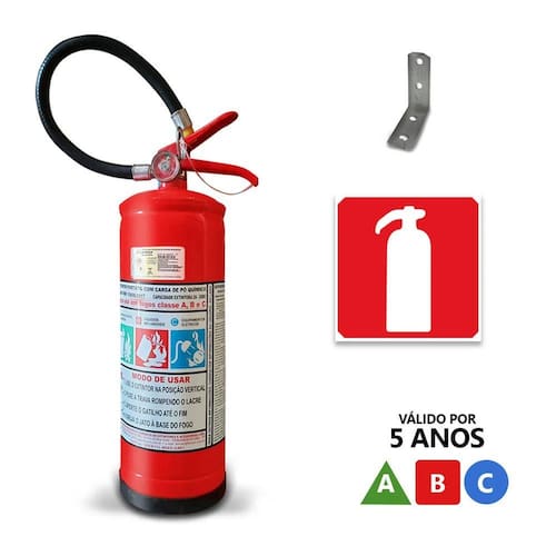 Extintor de pressurização direta, com carga de 4Kg de pó químico seco ABC, tubo de aço carbono.