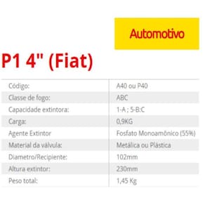 Extintor ABC P1 Fiat Automotivo 01Kg - Validade 5 Anos