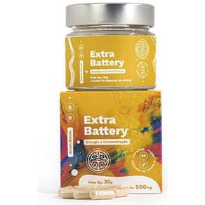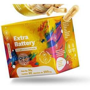 Mais do que energia, sinergia em você Turbine o seu desempenho físico e mental. Mente e corpo trabalham juntos e, só assim, a sua performance brilha. Quando o dia não pode terminar, seu foco precisa estar sempre recomeçando. Cada vez mais nos fracionamos e o nosso todo precisa aparecer em tudo. O extra battery foi desenvolvido para repor importantes vitaminas e nutrientes responsáveis por reduzir o , cansaço, melhorar a concentração, disposição, bem-estar e, principalmente, aumentar a energia física e mental que todos precisamos diariamente. Porção de 1g 2 cápsulas Quantidade por porção % vd Valor energético 0kcal 0% Vitamina b12 cianocobalamina 150mcg 100% Cafeína 100mg - Vitamina b6 cloridrato de piridoxina 13mg 1000% Fosfatidilserina 75mg - Coenzima q10 30mg - Óleo de semente de uva vitis vinifera l. 50mg - D-biotina 9,94mcg 33% Bisglicinato de magnésio 63mg 24% Cloreto de colina 100mg 18% Marca: Não Informado
