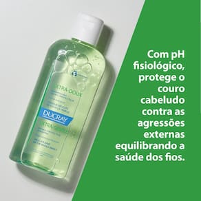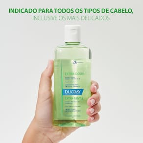 Extra Doux Ducray Shampoo com 200ml O Shampoo Extra Doux limpa sem agredir os fios e é indicado para todos os tipos de cabelo, inclusive os mais delicados. Sua fórmula suave é livre de álcool, parab