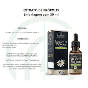 Composição: Própolis e álcool de cereais hidratado. Extrato seco mínimo de 11% m/v.