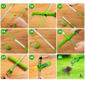 O Extrator de Ervas Daninhas Lorben é excelente para remover ervas daninhas, carrapichos, dentes de leão e outros matos comuns em jardins.Fabricado em liga de alumínio e plástico de alta qualidade, o Extrator é leve e possui cabo longo, permitindo que você arranque as ervas daninhas sem se curvar ou se ajoelhar, evitando dores nas costas. A alça ergonômica oferece uma pegada segura na execução do trabalho e as três garras de ferro galvanizado na ponta do cabo retiram as ervas daninhas sem esforço.Não indicado para uso em solos duros e com pedras, pois podem danificar as garras.Muito fácil de usar, basta pisar no pedal, girar e puxar. Remove as ervas daninhas facilmente junto com as raízes.Uma ferramenta indispensável para cuidar do paisagismo de seu jardim ou quintal.Marca: LorbenMaterial: Liga de alumínio, plásticoCor: Verde/PrataDimensões do produto:Desmontado: 50x22,5x5cmMontado: 93x20cmPeso do produto: 450gTamanho da embalagem: 60x60x4,5cmPeso da embalagem: 500gCódigo do produto: GT6111Imagens ilustrativas. As tonalidades podem variar.