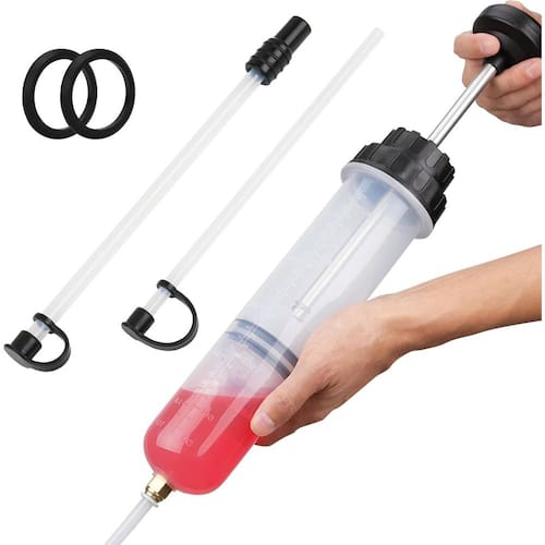 - FÁCIL TRANSFERÊNCIA DE FLUIDO - Projetada para facilitar a extração e o enchimento, esta bomba de seringa manipula uma variedade de fluidos, como fluido de freio, direção hidráulica, óleo de engrenagem e anticongelante, tornando-a uma adição versátil a qualquer kit de ferramentas.