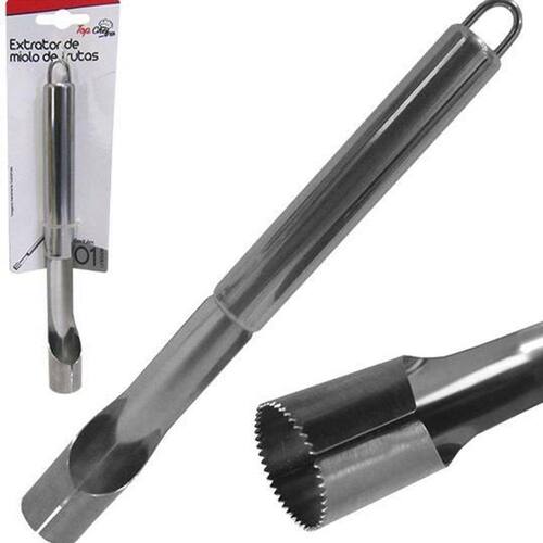 Validade: Indeterminada Tamanho Aproximado Do Extrator: 20,5cm Tamanho Aproximado Da Embalagem: A:24,5xl:7cm Peso Aproximado: 45g Tipo De Produto: Extrator De Miolo De Frutas Na Cartela Cor: Prata Composição: Inox
