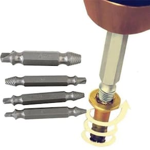 - Refaça a casa da cabeça do parafuso quebrado ou espanado com o lado perfurante e remova parafusando o lado extrator na nova casa.