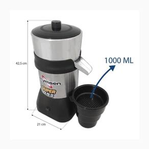 Seu gabinete é projetado em aço inox escovado e a câmara de suco em alumínio super resistente. Acompanham o produto um cone para laranja e outro para limão que extrai o suco com máximo de aproveitamento. Sua peneira e copo que tem capacidade para 01 litro, são de plástico reforçado. Suas principais características são a robustez, facilidade de operação e limpeza, além da alta durabilidade e rotação. Equipamento potente com motor de "0,5CV", super seguro, tornando a produção do suco muito mais rápida e eficiente, sem desperdício. E para facilitar a limpeza, as peças são facilmente desmontáveis. Ofereça sucos de qualidade aos seus clientes de uma maneira bem mais rápida, proporcionando satisfação aos mesmos.