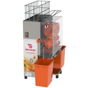 Espreme até 20 laranjas por minuto, ideal para demandas elevadas; Produz suco 100% natural; Design pensado para facilitar o processo, desde o armazenamento até a extração do suco; Cesto para facilitar o armazenamento das frutas organizadas, e prontas para uso; Guia de abastecimento para abastecer o espremedor com facilidade; Peças de fácil desmontagem para higienização; Estrutura em acrílico transparente que permite a visualização completa do processo de extração; Bacias coletoras de resíduos que mantém o ambiente limpo e organizado; Disponível em 220V Marca: BRAESI EQUIP. ALIM. LTDA. FILIAL