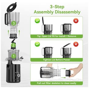 O Extrator de Sucos Hzon e preserva mais nutrientes e sabores, minimizando o calor e a oxidação para manter vitaminas, antioxidantes e enzimas, reforçando a imunidade e o bem-estar, em comparação com os extratores centrífugos. Com mais de 99% de eficiência na extração de suco, os extratores masticadores lentos da Hzon e produzem polpa mais seca e mais porções por lote de frutas e vegetais, reduzindo o desperdício e economizando dinheiro. Ideal para indivíduos atentos à saúde e famílias ocupadas em busca de nutrição conveniente. Fácil de limpar, com peças removíveis e função de reversão antientupimento que facilita a limpeza, mesmo de vegetais de folhas verdes como couve. O extrator de sucos lento de prensa a frio é feito de materiais duráveis e de qualidade alimentar, livres de BPA, duráveis e fáceis de manter. Inclui escova e livro de receitas. Com uma boca de alimentação extra larga de 13,46 cm, permite inserir frutas e legumes inteiros, eliminando a necessidade de cortes prévios para economizar tempo e maximizar o rendimento de suco. Operação ultra silenciosa a 50 RPM, com menos de 60 dB, garante manhãs tranquilas. A frescura dos sucos é prolongada. Leitura obrigatória para o primeiro uso: 1. Trave a boca de alimentação girando para a seta com a tampa aberta em 90 graus, feche com segurança antes de ligar. 2. Remova sementes duras ou grandes, como as de pêssego. 3. Evite usar limão, gelo, nozes. Em caso de problemas, sinta-se à vontade para nos contatar para substituição. Aproveite uma vida saudável de forma simples.