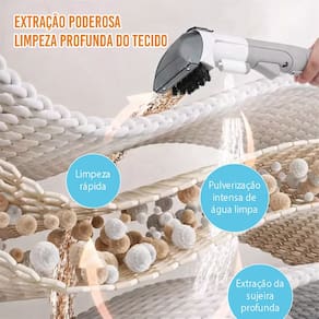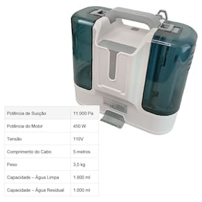 Este Extratora de Sujeira portátil possui design compacto, leve e destacável, com dois tanques de água independentes — 1,8L para água limpa e 1L para resíduos — garantindo praticidade no uso, fácil armazenamento e excelente portabilidade. Com motor de 450W, sucção superpotente e nível de ruído abaixo de 76dB, é ideal para uso doméstico, comercial e automotivo, permitindo aspirar e remover com eficiência manchas difíceis em carpetes, sofás, pisos, colchões, cortinas, interiores de carros e brinquedos, incluindo urina de animais, vinho tinto, mel e café. Além disso, pode ser utilizado apenas como aspirador de pó quando não há necessidade de pulverização de água, oferecendo ainda mais versatilidade na limpeza.