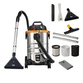 Lavadora Extratora Aspirador 30l 1600w Carpet Cleaner WapCaracteristicas:As Extratoras WAP são referência em limpeza e qualidade, por isso, a Carpet Cleaner PRO 30 é um equipamento potente e ideal para uma higienização profissional.Com potência de 1600 W, 1 Mangueira de 2,5 metros e 2 Extensões retas de alumínio, é possível aspirar e extrair sujeira de tapetes, carpetes, estofados e colchões com eficácia.Versátil, vem com 1 Bico extrator e 1 Bico múltiplo grande para piso, carpetes e tapetes, 1 Bico extrator pequeno para estofados e 1 Bico canto, apropriados para realizar diversos tipos de serviço. Também acompanha 2 Rodízios + 2 Rodas para transporte, e 2 Porta Acessórios.A Extratora WAP Carpet Cleaner PRO 30 conta com 3 níveis de filtragem, sendo barreiras para as micropartículas de sujeira, garantindo o retorno de um ar mais puro para o ambiente. Essa filtragem é composta de 1 Filtro/Saco de pano, 1 Filtro espuma, 1 Filtro tela e 1 Filtro HEPA, todos laváveis para que possam ser higienizados, secos e reutilizados.A WAP Carpet Cleaner PRO 30 é a melhor extratora de sujeira, cuidando até de uma limpeza mais profunda e difícil. Tem capacidade total de 30 litros, recipiente externo de água limpa de 4,5 litros, alça para transporte e cabo elétrico de 5 metros, proporcionando mais autonomia durante a utilização.Conta com interruptor elétrico para sucção e bomba spray, podendo ser usado separadamente ou ao mesmo tempo, além de um gatilho de pulverização, trazendo mais praticidade e conforto.Especificações:- Cor: Amarelo, Preto e Inox- Potência: 1600W- Tensão: 127V ou 220V * Não é Bivolt- Motor: Universal- Vácuo: 190 mbar- Capacidade total / Útil: 30 L / 22,3 L- Recipiente água limpa: 4,5 L- Aspira água: Sim- Tipo filtro: 1 Filtro/Saco de pano lavável; 1 Filtro espuma lavável; 1 Filtro tela lavável; 1 Filtro HEPA lavável- Níveis de Filtragem: 3- Cabo elétrico: 8 metros /MANGUEIRA: 2,5 metros- Peso Bruto: 9 kg- Peso Liquido: 6 kg- Dimensões da caixa (CxLxA): 43,5 x 34,5 x 56 cm- Dimensões do produto(CxLxA): 37,5 x 43 x 65 cmItens Inclusos1 Mangueira de 2,5 metros2 Extensões retas de alumínio1 Bico extrator1 Bico múltiplo grande para piso, carpetes e tapetes,1 Bico extrator pequeno para estofados1 Bico canto, apropriados para realizar diversos tipos de serviço.2 Rodízios + 2 Rodas para transporte, e 2 Porta Acessórios.1 Filtro/Saco de pano, 1 Filtro espuma, 1 Filtro tela e 1 Filtro HEPA, todos laváveis para que possam ser higienizados, secos e reutilizados.IMAGENS MERAMENTE ILUSTRATIVAS