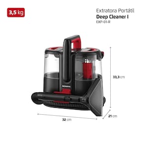"DESCRIÇÃO RESUMIDA A Extratora e Higienizadora Portátil Mondial EXP-01-R é ideal para quem busca limpeza profunda e praticidade em diversos ambientes. Com 3 funções (borrifar, esfregar e extrair), ela atua em estofados, carpetes, bancos de automóveis, colchões e muito mais. Leve, com mangueira de 2 m e cabo de 5,5 m, permite alcance amplo sem maiores esforços.