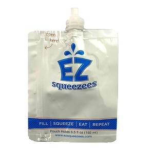 EZ Squeezees são a bolsa de alimentos recarregável e reutilizável que se parece e se sente como as bolsas pré-cheias no mercado. Basta encher com seus alimentos em purê favoritos e, quando terminar, lavar e reutilizar. Enche, aperte, coma e repita!