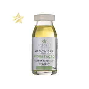 Ampola de hidratação magic hidra 15ml dyusar cosméticos glicerina-bi-destilada ação: promove maciez, hidratação, brilho, controle de frizz, combate as pontas duplas e fortalece a fibra capilar. Lipídios botânicos: que proporcionam hidratação profunda em cabelos extremamente ressecados. Ácido lático: essa tecnologia avançada tem o poder de reforçar a fibra capilar e proporcionar uma profunda reconstrução capilar até o córtex. Pantenol vitamina b5 : garante efeito hidratante e prevenção de danos melhorando o condicionamento de cabelos secos e danificados, reduzindo a formação de pontas duplas. Além disso, o uso do pantenol no couro cabeludo também auxilia no crescimento mais rápido dos cabelos, já que a ação restauradora faz com que os fios fiquem mais fortes e espessos. Modo de usar: coloque algumas gotas na mão levemente úmida, ative o conteúdo da ampola friccionando as mãos até formar uma espuma ou em uma cumbuca, misture 1 medida da ampola de hidratação e acrescente de 1 a 2 medidas de água. Bater com ajuda de uma espátula até formar um creme consistente. Aplicar nos cabelos ainda úmidos após lavagem com shampoo distribuindo uniformemente. Massagear e deixar agir de 3 á 10 minutos. Enxaguar. Precauções: uso externo. Mantenha longe do alcance de crianças. Em caso de irritação, suspenda o uso. Evite contato com os olhos, caso isto ocorra enxágue abundantemente com água. Guarde em local fresco e ao abrigo da luz. Marca: Dyusar Cosmeticos