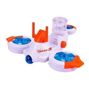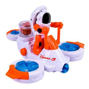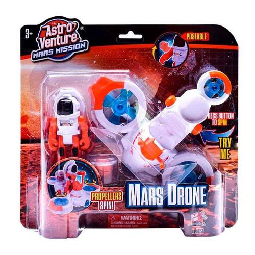 Este incrível brinquedo Drone conta hélices giratórias, recipiente com fóssil e um astronauta com braços articulados.