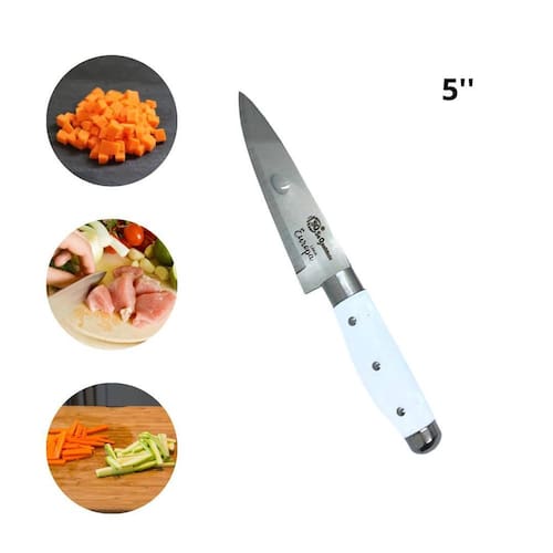 Faca 5' Inox Cozinha Carne Legumes Frutas Peixe Churrasco CONTÉM: 1 FACA DE 5 POLEGADAS DESCRIÇÃO: Cabo: Plástico Branco Formato Anatômico ; Lamina: Inox; Largura da Lamina: 2mm; Tamanho da Lamina: 128mm; Tamanho do Cabo: 112mm; Tamanho Total: 24.0cm; Largura do Cabo: 16mm;