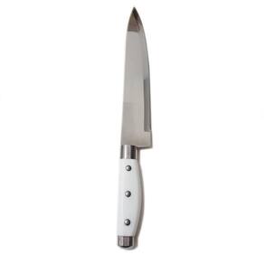 Lâmina estampada em aço inox; Tratamento térmico total; Indicada para cortar e fatiar carnes, legumes e verduras; Cabo injetado em polipropileno fixados por rebites de alumínio; Ponta do cabo reforçada com capsula de aço para auxiliar na quebra de cascas; Reforço de aço na parte de baixo do cabo garantindo maior fixação e resistência. Ean: 7899441531739