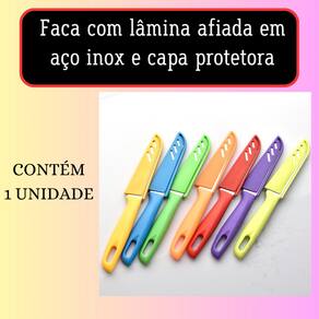 Faca Afiada Lâmina em Aço Inox com Capa Protetora.