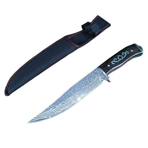 A faca possui um cabo FullTang revestido de madeira e uma lâmina de aço inoxidável Para uma maior Durabilidade, Bainha de Nylon para Transporte e proteção do Fio de Corte da lamina Essa faca é versátil e adequada para uma variedade de tarefas. Com seu cabo confortável e lâmina afiada, ela proporciona um manuseio preciso e seguro.