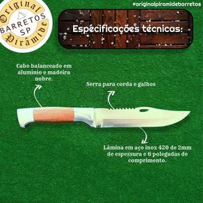A Faca Caça e Pesca de 6 é um tributo à habilidade artesanal, combinando alta performance com um design elegante. Seja para uso diário em atividades ao ar livre ou para situações específicas de caça e pesca, esta faca atende às necessidades dos mais exigentes usuários, tornando-se uma peça essencial para quem valoriza qualidade e sofisticação.