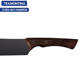 Garanta um corte de carne muito mais eficiente com a faca para carne Tramontina Churrasco Black com lâmina de aço inox escurecido e cabo de madeira 10 polegadas. Perfeita para o corte de grandes pedaços, sejam eles crus, assados ou cozidos, ela tem sua lâmina rígida produzida em aço inox escurecido com ponta curvada, o que garante excelente poder de corte. Seu cabo é em madeira e garante um manuseio mais firme e confortável, além de estilo e resistência. Sem dúvida, uma faca que facilitar esse momentoCom lâmina rígida e ponta curvada, é ideal para cortar carnes cruas, assadas ou cozidas.Lâmina de aço inox escurecido. Resistente e robusta.Cabo de madeira com design anatômico que torna o uso muito mais confortável.Rebites aço inox escurecido.Antes da primeira utilização, lave bem a peça e seque-a.Produto cortante e perfurante: tenha cuidado ao manusear e mantenha fora do alcance das crianças.Não utilize materiais abrasivos para limpeza e para maior durabilidade do produto recomenda-se secar bem antes de guardar. Não utilize em máquinas de lavar.Para descarte do produto e embalagem siga as orientações de reciclagem vigentes.ALTURA2,2 cmLARGURA6,7 cmCOMPRIMENTO38,6 cmPESO250 gr