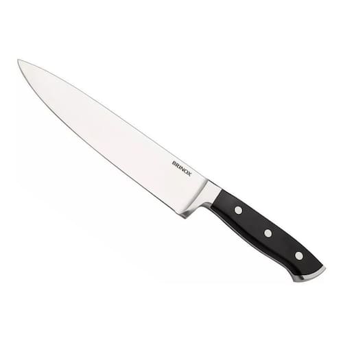 Faca Chef Infinity Brinox Sofisticada, precisa e com excelente balanço. A diferença para quem precisa de um bom corte no preparo de um prato. Especificação: Lâmina em aço inoxidável temperada; Espiga em aço inoxidável maciço; Cabo ABS injetado e rebites de aço inox; Lâmina: 8 polegadas; Indicadas para cortar, picar e fatiar; Dimensões 33.5 x 4.6 x 1.9 cm C x L x A Ean: 7896502883004