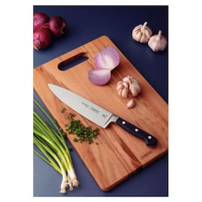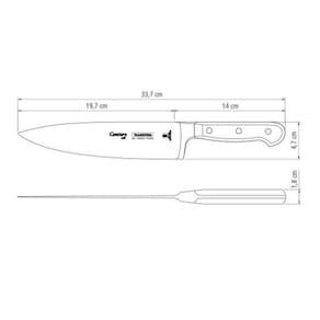 Para os apaixonados pelo mundo da gastronomia, a faca chef Tramontina Century com lâmina em aço inox e cabo em policarbonato e fibra de vidro 8 polegadas é a faca ideal. Com ela criar receitas e manipular diversos ingredientes é muito mais prático, pois tem lâmina em aço inox com tratamento térmico que assegura um corte rápido e preciso, além de garantir a longevidade do fio. Seu cabo de policarbonato com fibra de vidro possui formato anatômico, que proporciona conforto e durante o uso. Desenvolvida especialmente para uso intenso, possui 25 anos de garantia contra de fabricação. A Faca Chef Tramontina é ideal para cortar, fatiar, filetar e picar alimentos diversos, um item indispensável para sua cozinha!