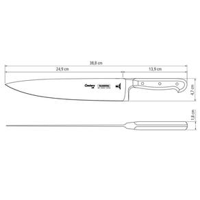 Faca Chef Tramontina Century Lâmina Em Aço Inox Cabo De Policarbonato E Fibra De Vidro 10" 24011110 FACA CHEF TRAMONTINA CENTURY COM LÂMINA EM AÇO INOX E CABO DE POLICARBONATO E FIBRA DE VIDRO 10 24011110 Marca: Tramontina Modelo: Chef Tramontina Century com Lâmina em Aço Inox e Cabo de Policarbonato e Fibra de Vidro 10 polegadas 24011/110 DESCRIÇÃO DA FACA CHEF TRAMONTINA COM LÂMINA EM AÇO INOX E CABO DE POLICARBONATO E FIBRA DE VIDRO - Seja você chef ou cozinheiro por hobby, garantimos que você entende a importância de utensílio de alta qualidade na sua cozinha, não é mesmo? - Por isso, a linha Century desenvolveu uma faca ideal para o uso intenso: a Faca Chef Tramontina Century com Lâmina em Aço Inox e Cabo de Policarbonato e Fibra de Vidro 10 polegadas. - Uma peça única, que recebe materiais de alta qualidade na sua produção, passando por um processo de fabricação rigoroso que a torna altamente durável, oferecendo ainda mais precisão no corte. - A Faca Tramontina Chef é produzida com lâmina em aço inox, com cabo em policarbonato com fibra de vidro. - Além disso, recebe tratamento térmico composto por têmpera (aquecimento da lâmina), sub- (resfriamento de -50 C a -196 C) e revenimento (aumento da flexibilidade do aço especial), proporcionando vida longa da lâmina. - Para tornar o manuseio ainda mais e confortável, o cabo é anatômico e ergonômico. - Faça diferente na sua cozinha, escolha Tramontina.