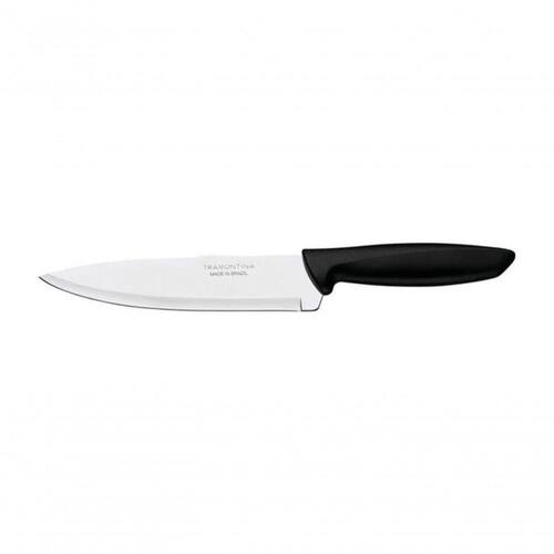 Faca Chef Tramontina Em Aço Inox 7" Preto Plenus Qualidade e mais charme para a suacozinha com a linha Plenus. Versáteis e modernos, os talheres podem compor umvisual clássico, quando a opção for pelas cores sóbrias, ou alegre, se apreferência for por cores quentes e . Completa, a linha atende osdiferentes usos: do preparo dos alimentos ao de mesa. A linha Plenusvai do café da manhã ao jantar, do churrasco à mesa de queijos. Recomendações de Uso: Modo de uso: antes da primeira utilização, remova as eventuais etiquetas e lave usando apenas uma esponja macia, sabão ou detergente neutro. Outros tipos de produtos, como palha de aço, poderão riscar ou prejudicar o acabamento da peça. Enxágue cada item a fim de remover totalmente os resíduos dos produtos de limpeza, que, por serem abrasivos, podem danificar o inox. Após a lavagem enxaguar e secar bem a peça, caso contrário, as substâncias químicas da água (cloro) poderão causar manchas. Para maior durabilidade do produto recomenda-se secar bem antes de guardar, mesmo após lavagem em máquina. Evite o direto da peça com superfícies quentes, pois poderá provocar deformações ao produto. Evite atrito entre as peças durante o processo de lavagem e no armazenamento, para mantê-la sem riscos.- Tenha cuidado ao Manusear produtos cortantes e perfurantes e mantenha-os fora do alcance de crianças.- Foto meramente ilustrativa. Informações Adicionais: