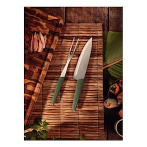 Toda a versatilidade da protagonista da cozinha: a faca chef Tramontina LYF com lâmina em aço inox e cabo de polipropileno PCR verde natureza 7 polegadas. Desenvolvida com materiais reciclados e recicláveis, ela é uma faca para o uso com os mais diversos alimentos e variados tipos de preparos. Sua lâmina é produzida em aço inox e seu cabo é em polipropileno PCR, características que garantem excelente poder de corte, alta resistência e durabilidade, além de permitir que seja levada à máquina de lavar louças. Inspirada em elementos naturais, tais como o vento e a folha, ela tem formas fluidas e é a escolha mais sustentável para sua cozinha!