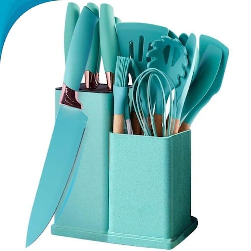 Facas e utensílios de alta qualidade, feitos para durar Utensílios de silicone resistentes ao calor e fáceis de limpar Tábua de corte de madeira robusta e durável Design ergonômico para manuseio confortável Diversas opções de cores para combinar com sua cozinha Ideal para cortes precisos e cozinhar com eficiência