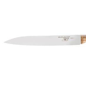 As facas Trattoria da Italiana Bugatti foram projetadas por um dos grandes designers Italianos, Andreas Seegatz da Stars Milano, para serem extremamente confortáveis, associando um cabo feito em madeira exótica chamada "Ash" (Freixo Europeu de reflorestamento), que combina alta densidade, conforto e leveza, com um desenho micro chanfrado, com ótima ergonomia, conferindo altíssima resistência.