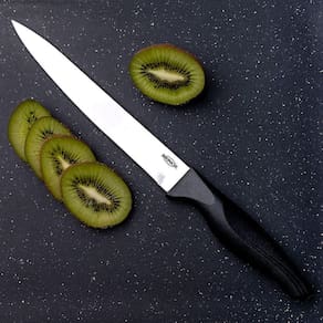 Descrição 1000 caracteres - Praticidade e segurança para o seu dia a dia com a Faca para Cozinha 7 polegadas (30,5 cm) aço inoxidável polido, temperado com tratamento térmico e cabo preto Cross Brinox ideal para todos os tipos de corte. É o produto versátil que completa a sua linha de facas prontas para o uso no seu dia a dia. A Faca de Cozinha proporciona uma excelente afiação por um longo período de tempo. Assim como as demais facas da linha Cross, a Faca Cozinha é durável e eficiente durante o uso. Os cabos ergonômicos em polipropileno, na cor preto possuem textura antiderrapante, são ideais para uso diário no preparo de diversos tipos de alimento, proporcionando maior praticidade durante o corte e limpeza da faca. É leve e segura para cortar, picar e fatiar todos os tipos de alimentos. E para completar a sua experiência na cozinha conheça também a linha completa de facas Cross, afiadores de facas Brinox e tábuas de bambu para corte Haus, você vai brilhar no preparo de alimentos.