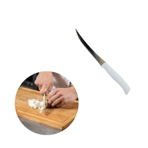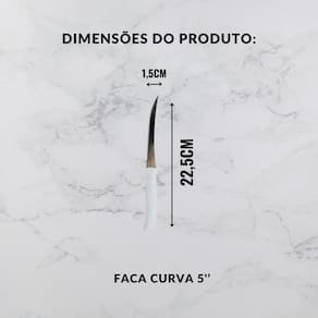 Faca curva, linha Chef, composta por uma lâmina em aço inox, com design moderno e exclusivo, acabamento em alto brilho, possui formato de cabo ergonômico revestido em polipropileno, adequado para cortes que exijam espessuras mais finos e delicados, facilitando com praticidade, segurança e garantindo maior durabilidade de corte.